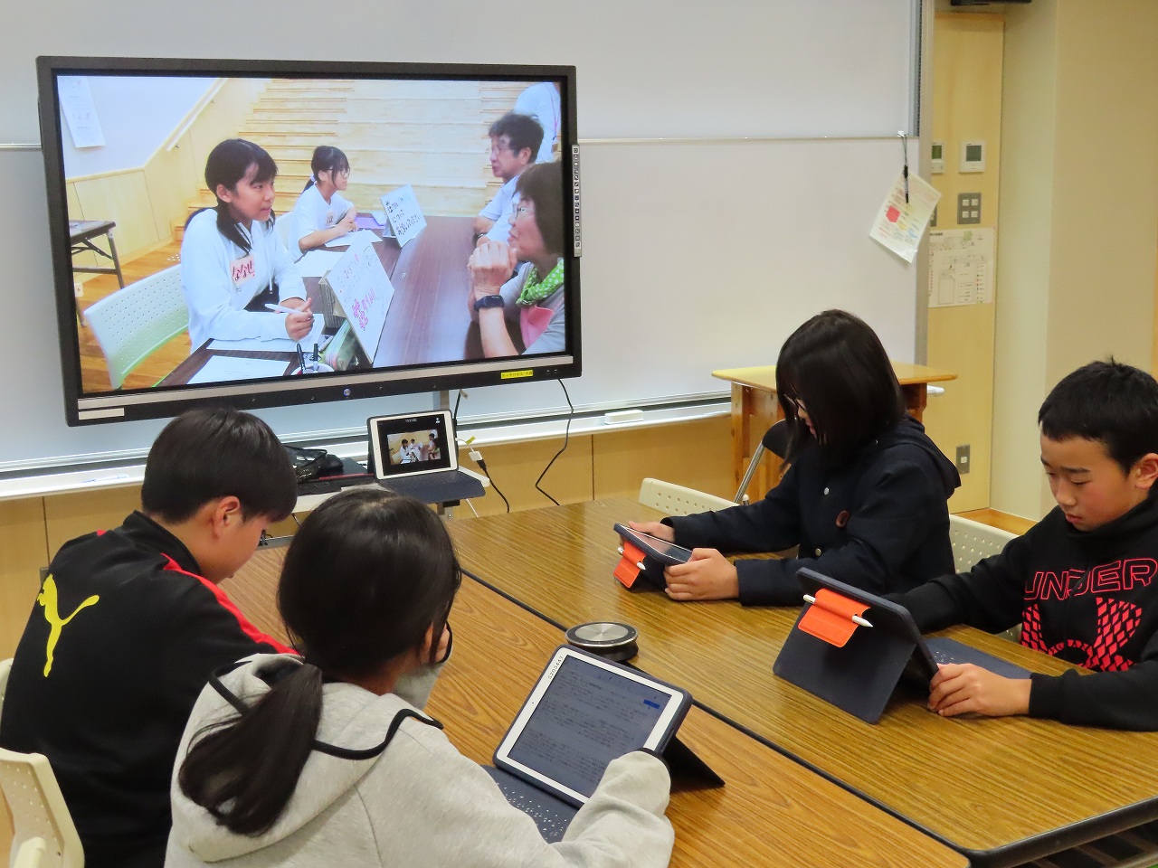 11月25日(火)、市内の小学校5校が参加する「児童会サミット」が開催されました。6年生がオンラインで参加し、お互いに学校や地域のじまんをプレゼンで発表し合いました。4人が自分の役割を果たし、堂々と荘川の魅力を発信することができました。また、他の学校の取組に対して、4人全員が感想を話していたことも素晴らしかったです。