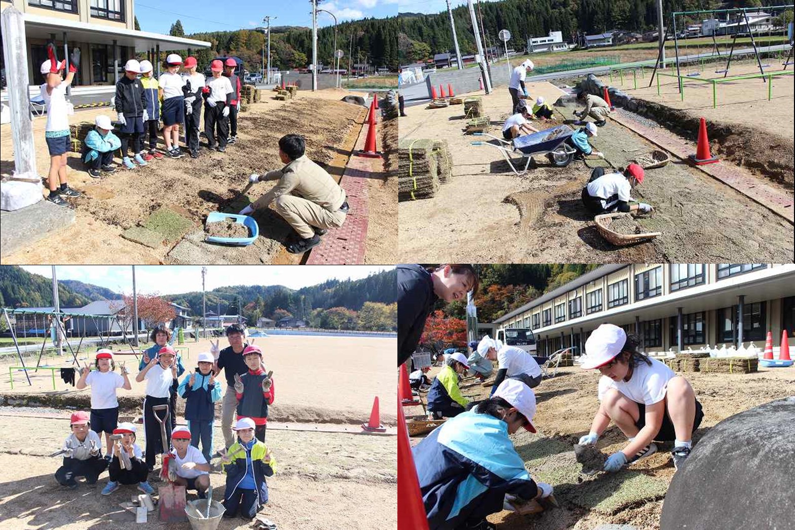 ホーム > 荘川っ子のくらし(一般公開) > 11月4日(火) 総合的な学習の時間「3・4年生花壇づくり:芝張り」